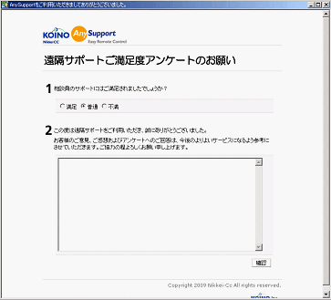 ○終了後はアンケート画面が出てきますがアンケート内容文の有る無しに関わらず